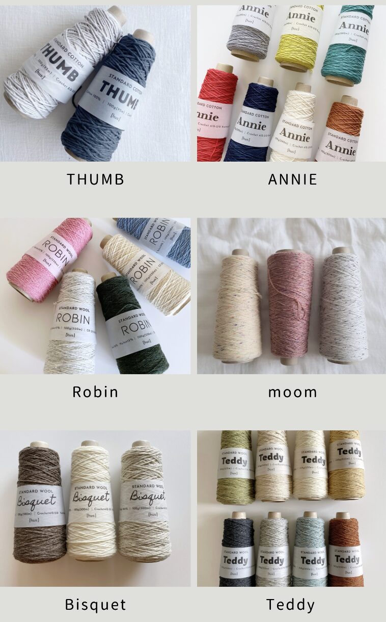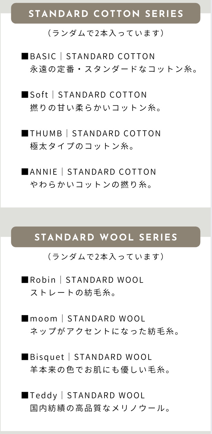 穏やかなカラーばかりなので、どの色で編んでもお気に入りのコーデに寄り添ってくれます。