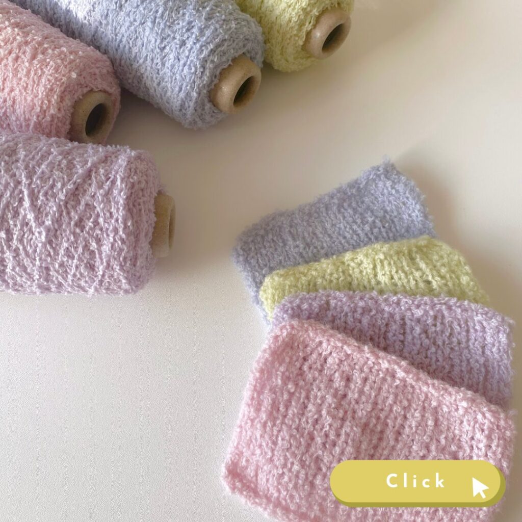 淡いカラーとブークレ状のほわっと感が絶妙にマッチした「pom (ポム)」。