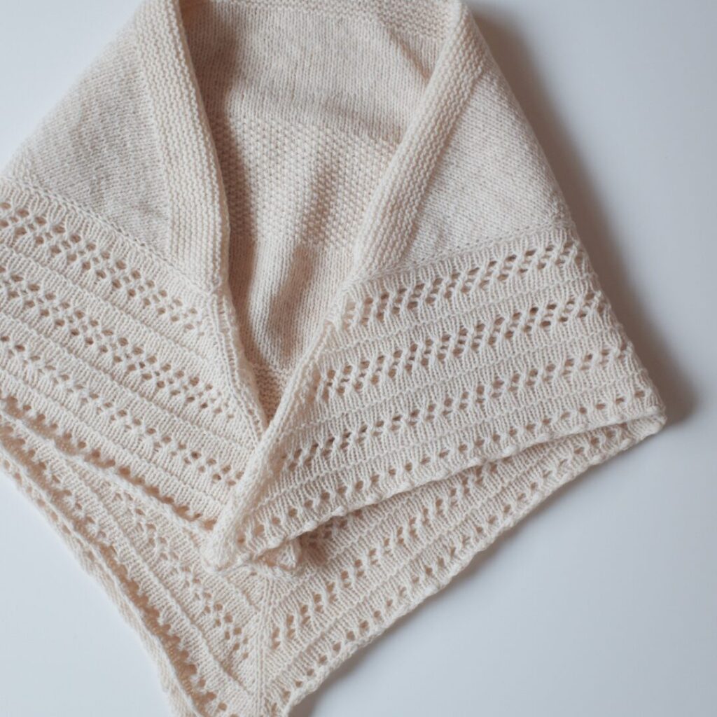 棒針編みで編み進めるショールは、シンプルな模様編みが特徴。
