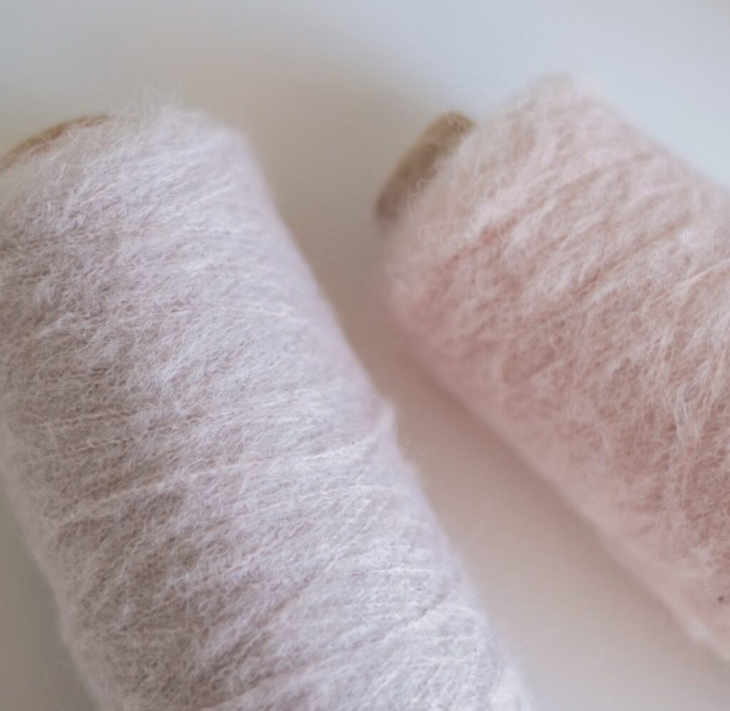 特殊な紡績方法でつくられていて、糸のなかにふんわりと空気を含むため、とても軽くてやわらかい編み心地が魅力。縮絨によってふわっと感・もちっと感がぐっと増します。