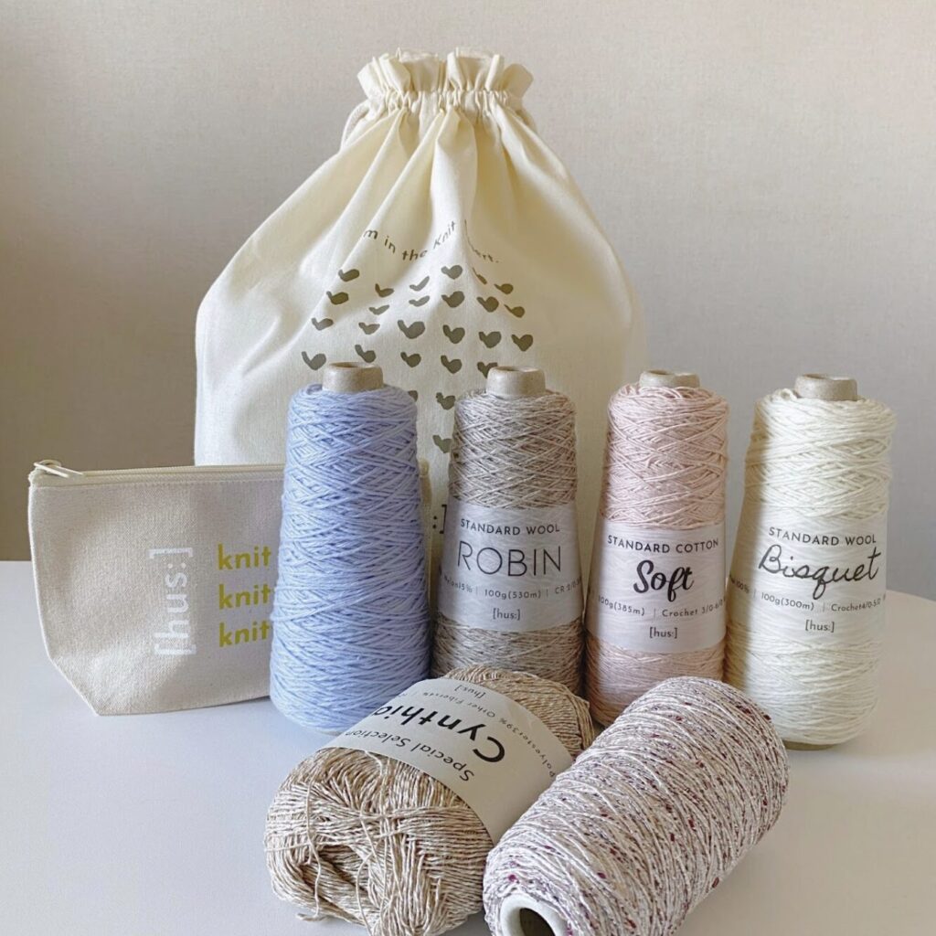 松は、[hus:]の糸をこよなく愛してくださっている方にも、はじめての方にも心から楽しんでいただけるように、種類豊富な糸と限定グッズをぎゅっと詰め込んだ、特別なセットです。