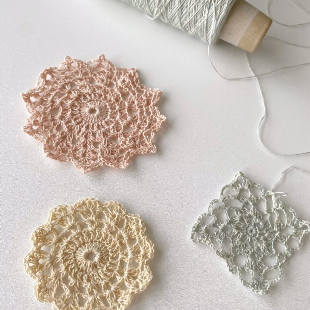 ショールやドイリーなどの繊細な作品を編んでも可愛らしく仕上がります。