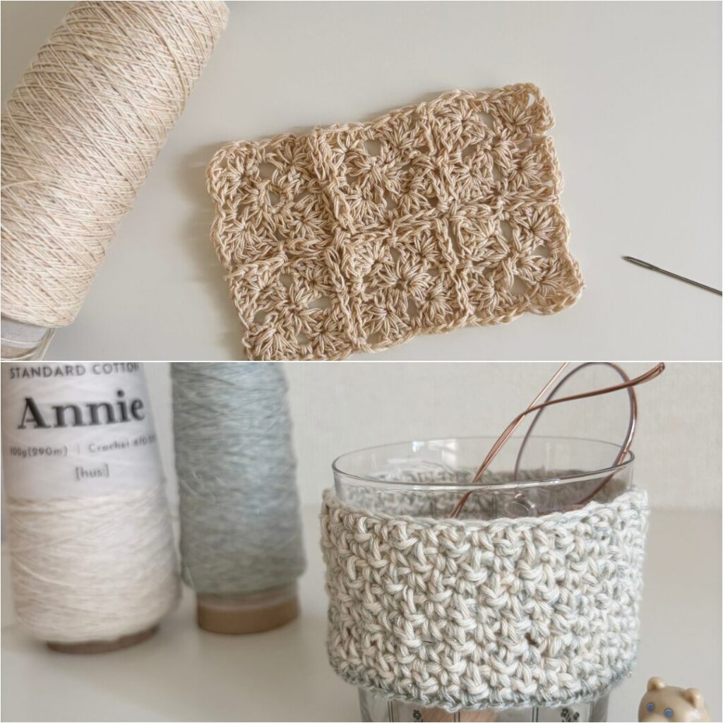 コットン100%の糸で編むから、手編みなのにお洗濯しやすくてお手入れが簡単です。