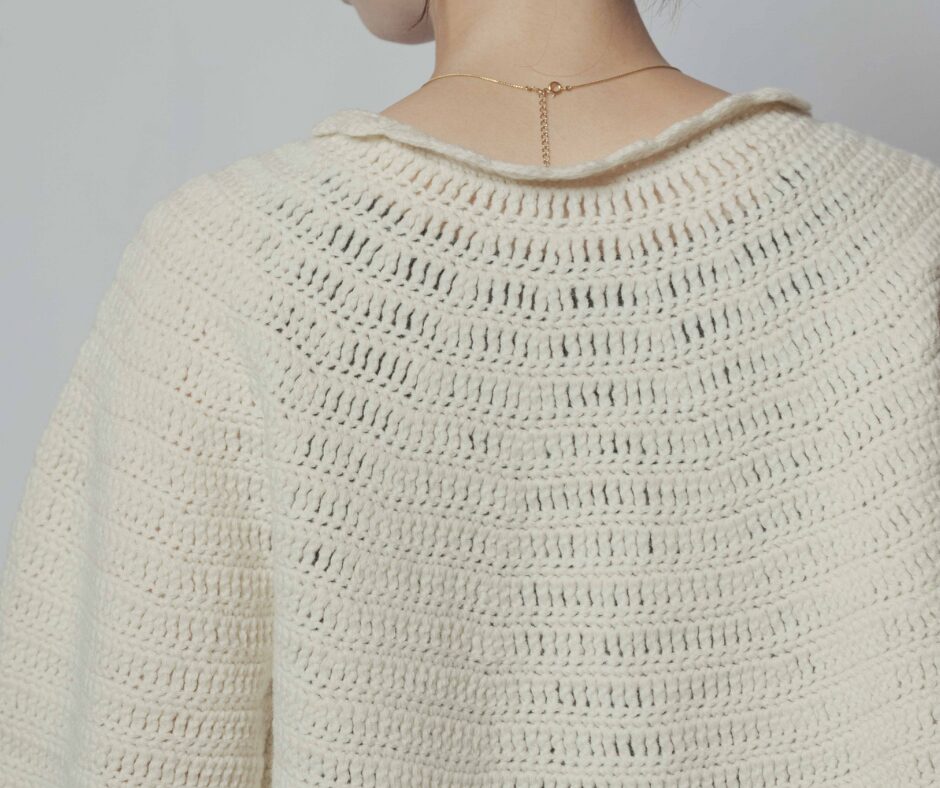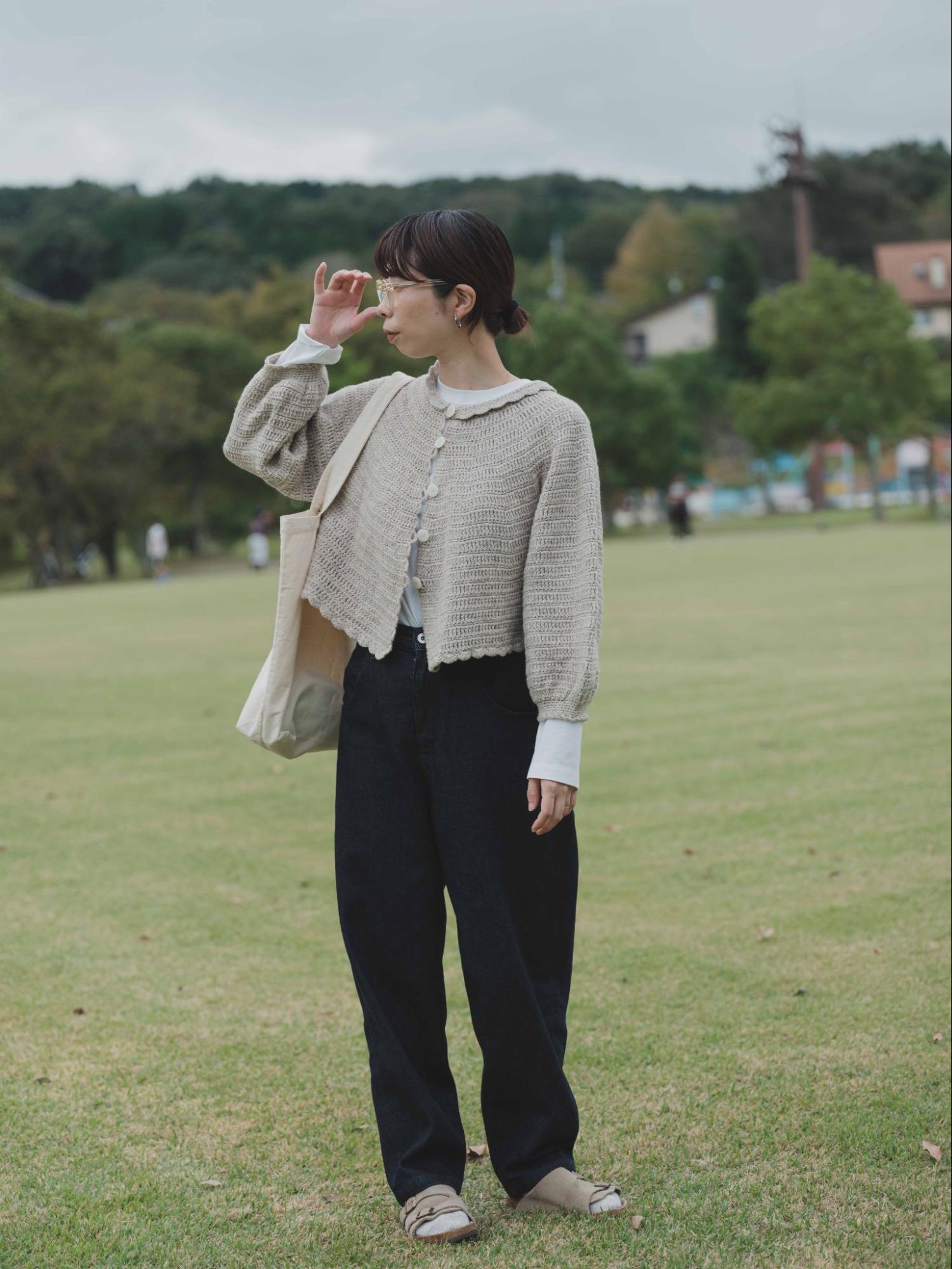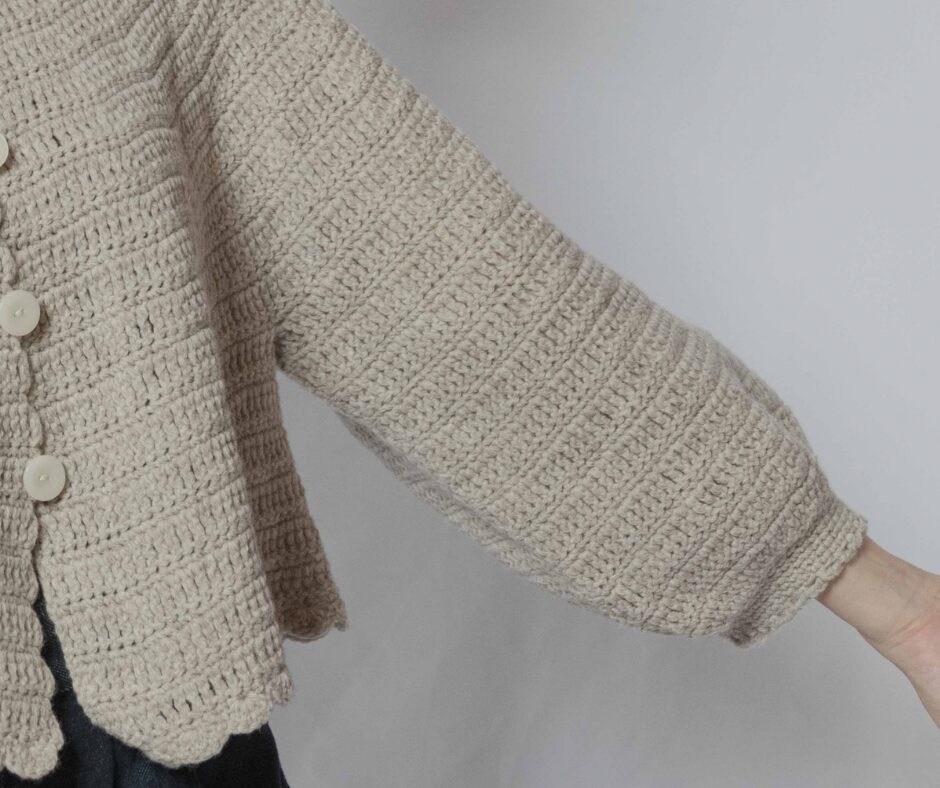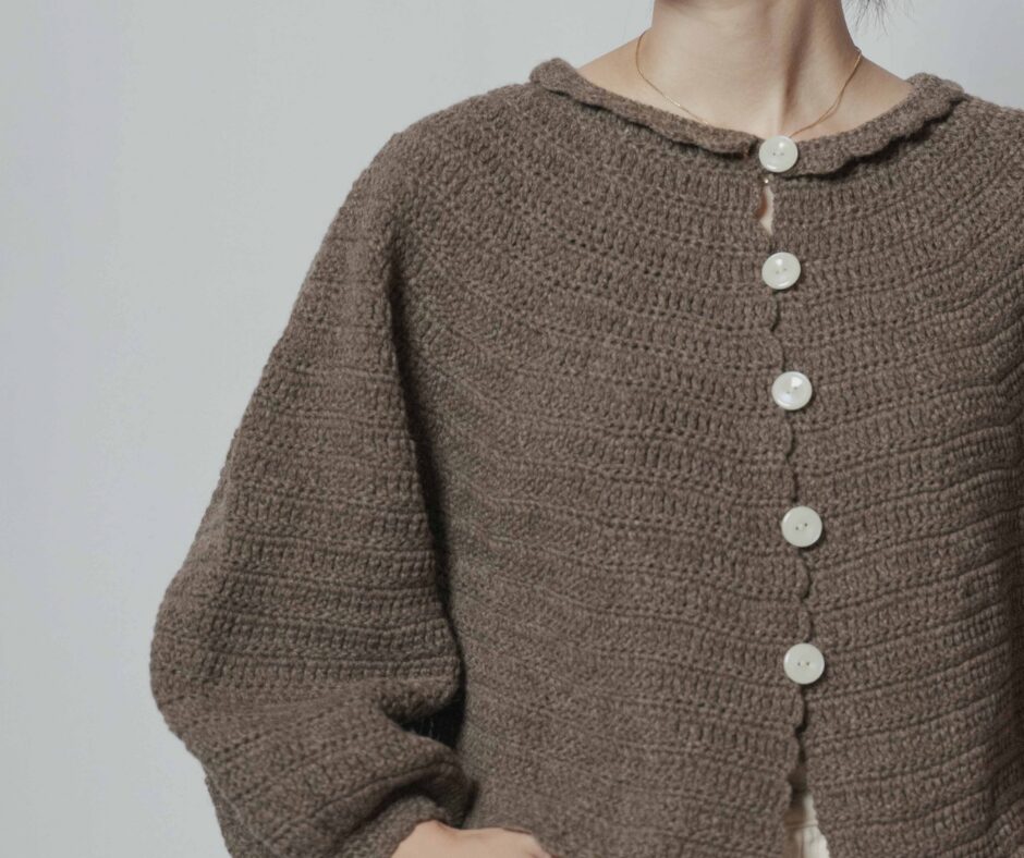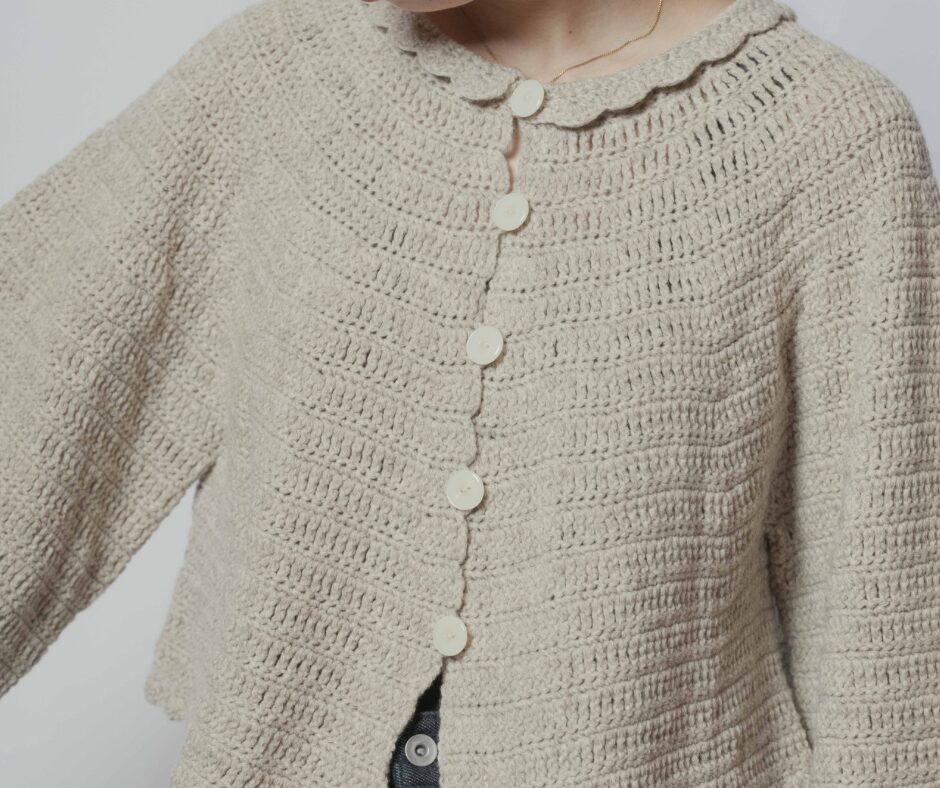 シンプルのなかにも上品な甘さを|ビスケで編むスカラップリムカーディガン