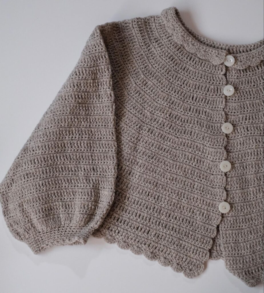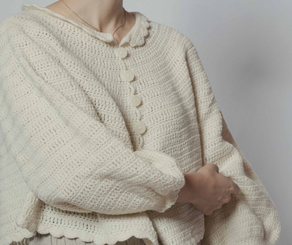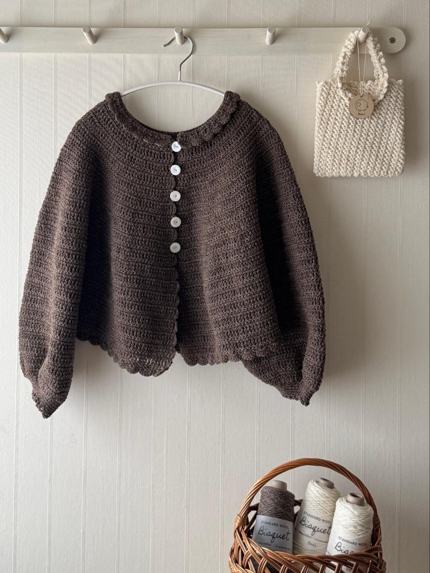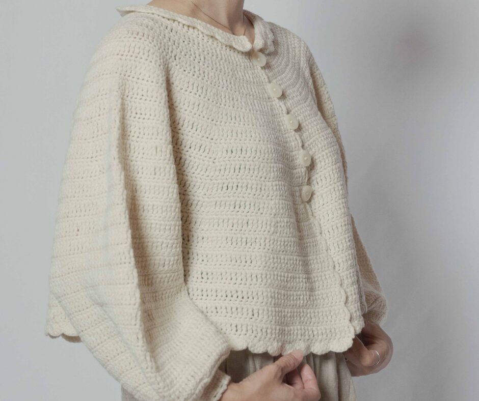シンプルのなかにも上品な甘さを|ビスケで編むスカラップリムカーディガン