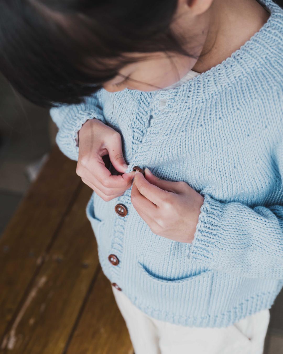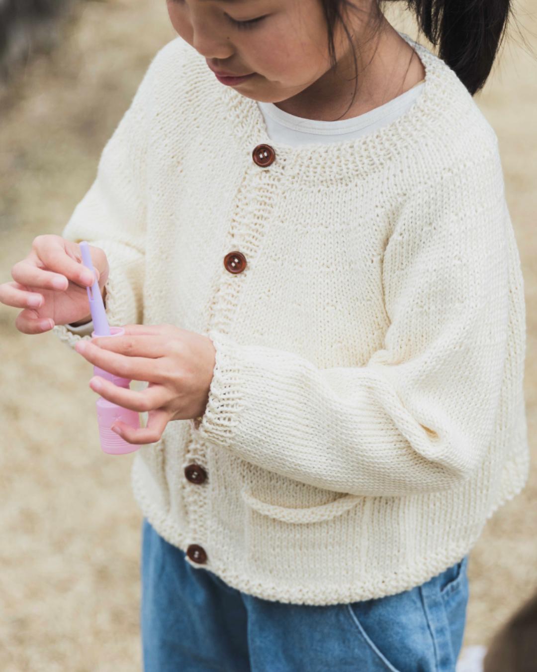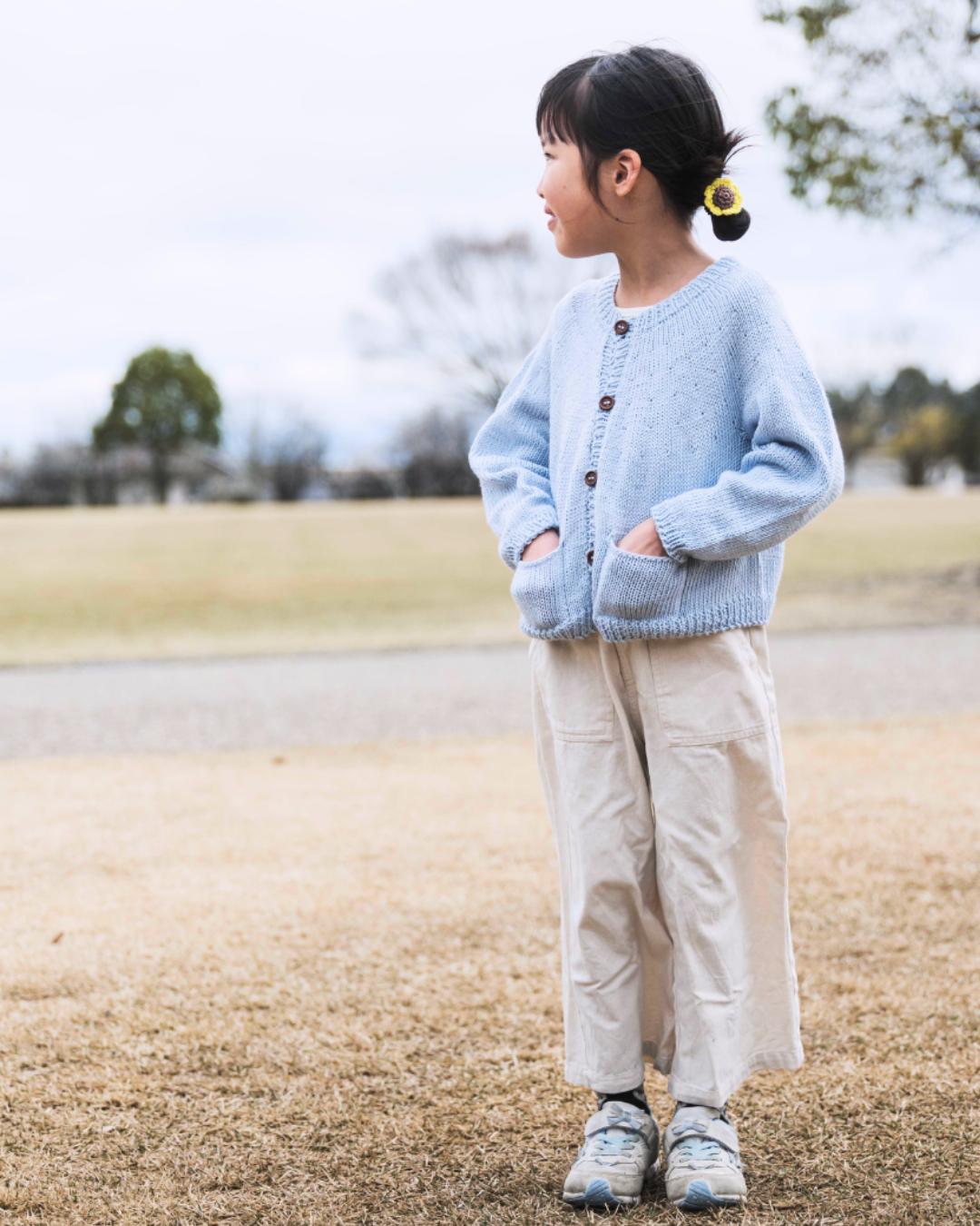 数ある子ども用のカーディガンの中でも、機能性とデザイン性を兼ね備えたこの作品が、心に響きました。
