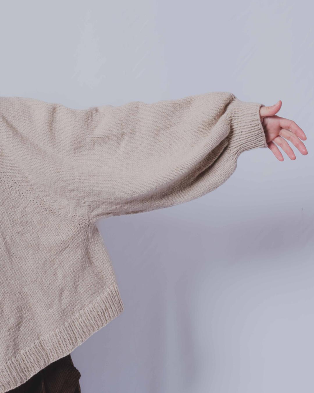 手編みのセーターでは、あまり見かけないボリューム感のある袖口に一目惚れしてしまいました。