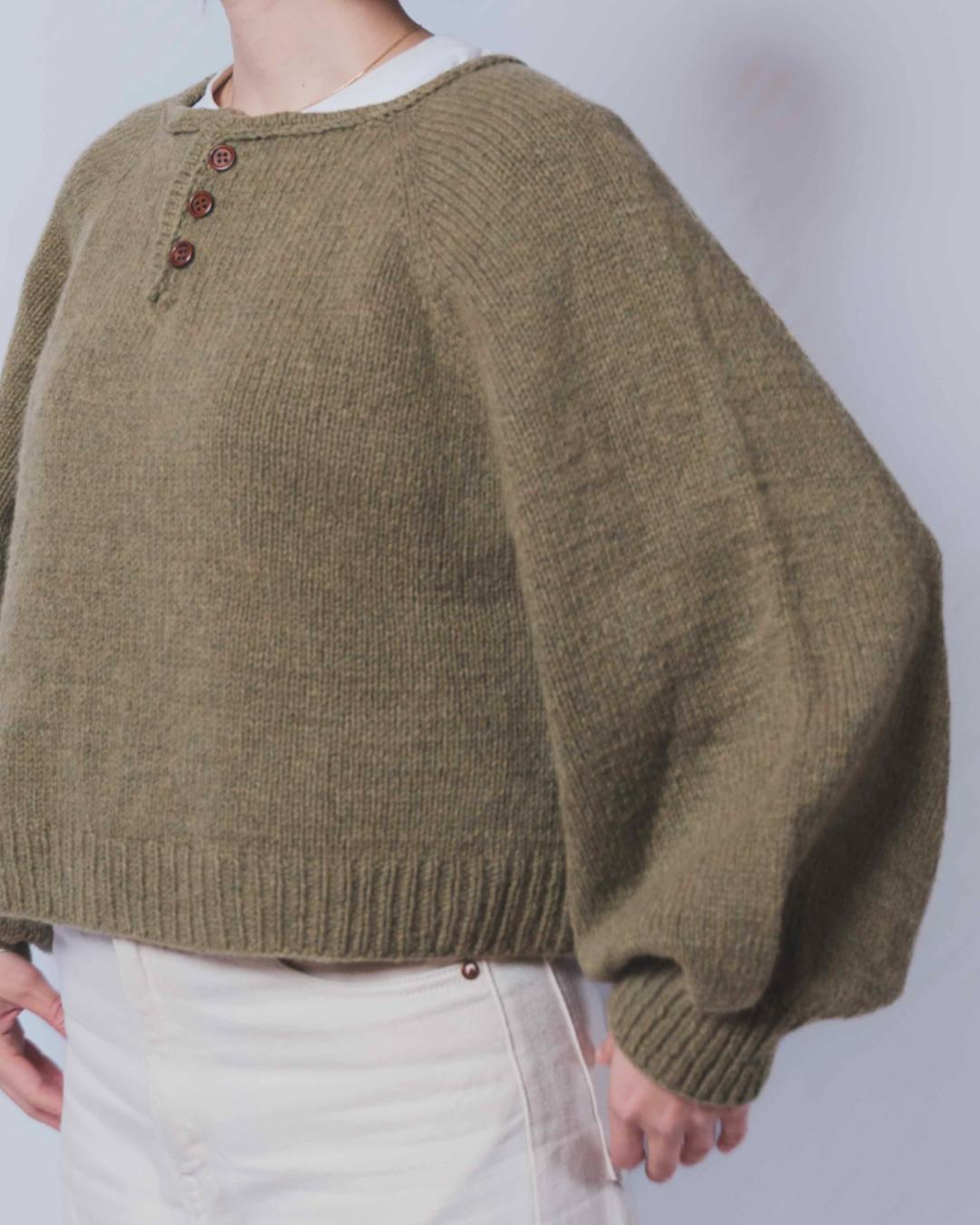 ぽわん袖のかわいいシルエットも、カラーによってはカジュアルな印象や、やわらかさのある上品な印象も与えてくれるので、いろんなカラーで編みたくなります。