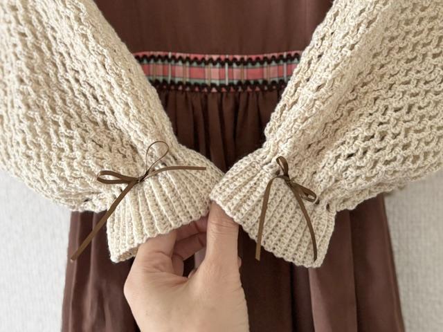 編みおわって、お気に入りのリボンを結ぶのがとても楽しみです。